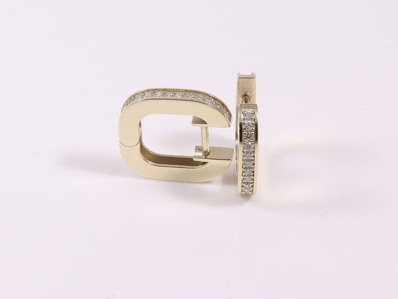 1 Paar handgearbeitete Gelbgoldohrringe 585 ppoliert mit 0,16ct. Brillant TW/VVS jeweils Pavee gefasst
